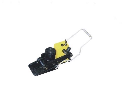 將手柄插入手柄套,上下扳動手柄,通過手動柱塞泵將壓力油壓入油缸,缸體上升,再通過耳軸帶動起道杠桿,借助起道杠桿前端的起道輪將鋼軌抬起。